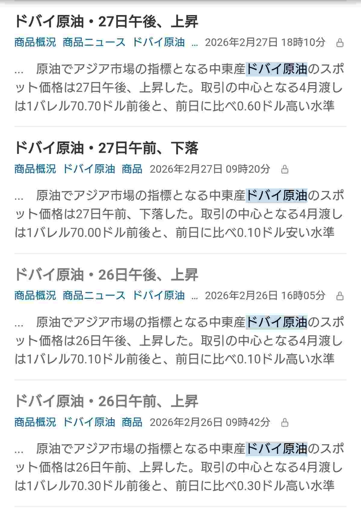 スポット価格は戦争前が70ドル前後で今140ドル前後だから倍になってまつ
