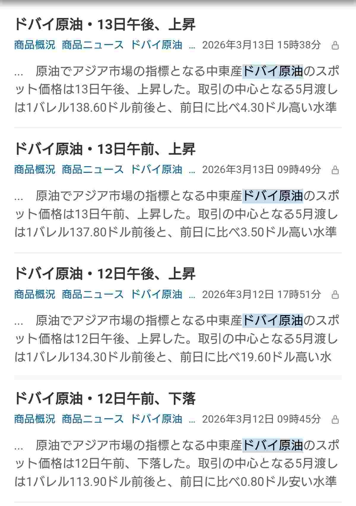 スポット価格は戦争前が70ドル前後で今140ドル前後だから倍になってまつ