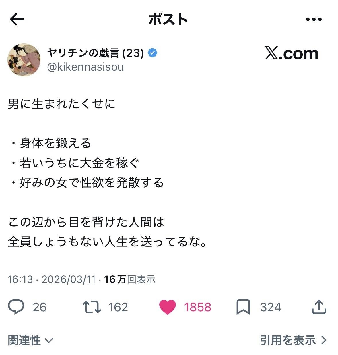 Xでしょうもないポストしてる奴がこの3点を達成出来てるとは思えない