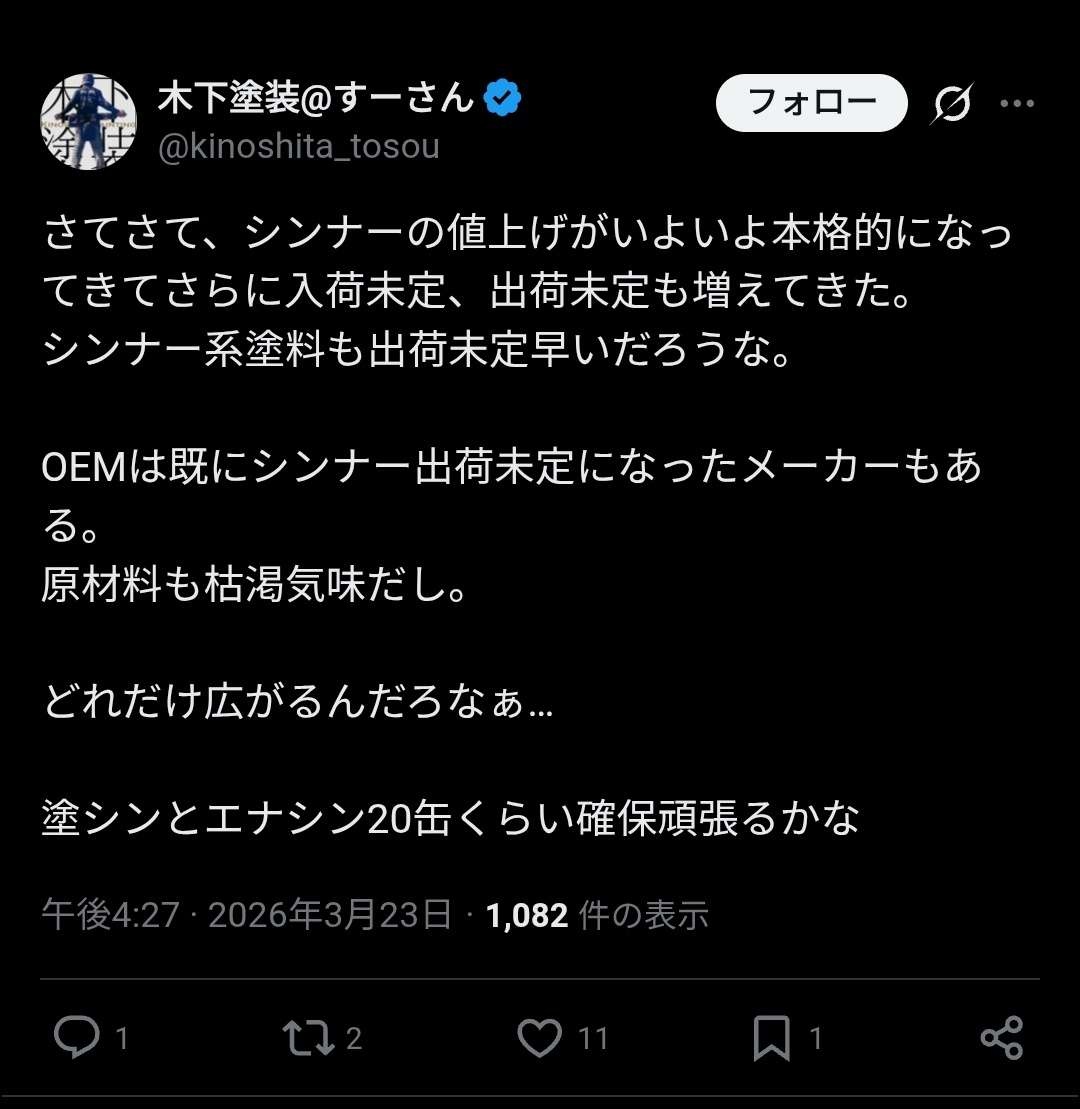 シンナーでそんなに上がるなら塗装施工料金3倍くらいになるんじゃね