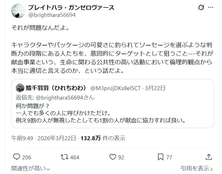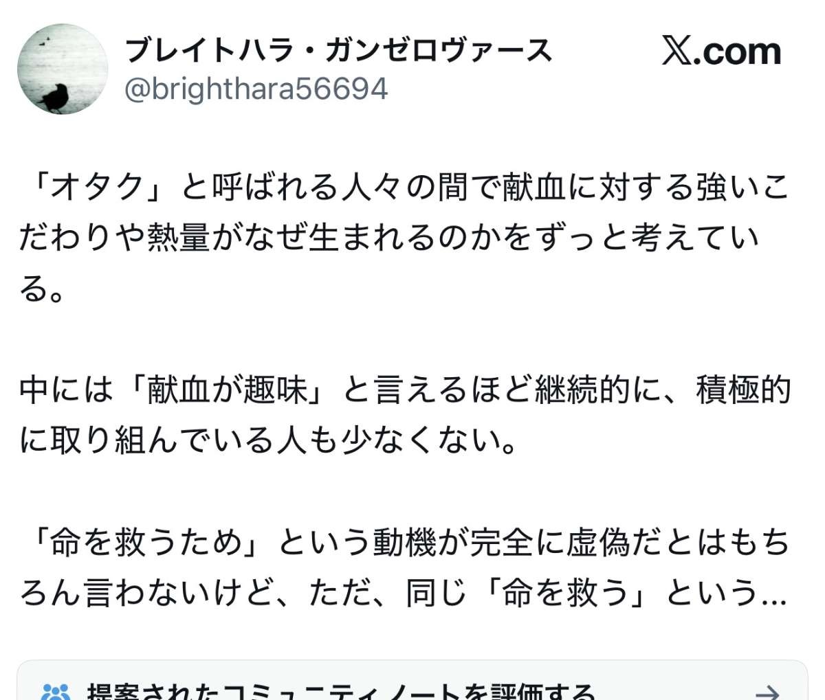 コイツがボソボソ言ったところで検査パスして対価のオタクグッズもらえる量の献血してるやつのがようやってるんや