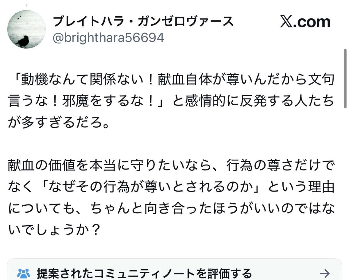 わざわざ変な理屈こねて献血自体にマイナスイメージつけようとする行為するやつは