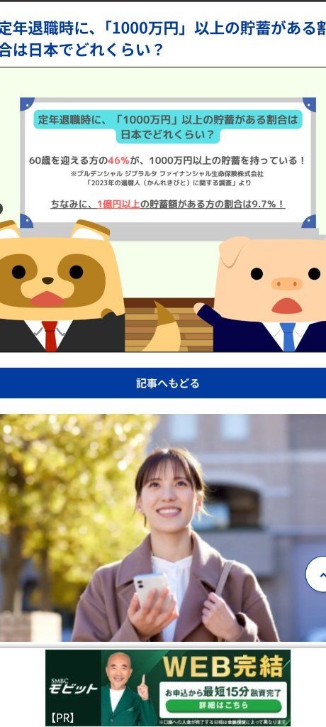 「60歳を迎える人の46%が1000万円超え」という具体的な数字については、調査年や対象(二人以上世帯、単身世帯、退職金を含むかなど)により変動します。
