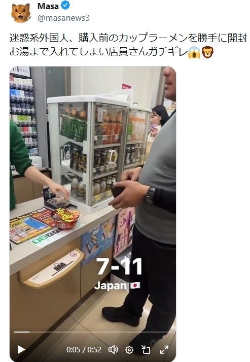Japanese people get angry for a Thai tourist who opened the cup noodle prior to payment.video.twimg.com/amplify_video/2037871212660158464/vid/avc1/720×1280/EK0mfOBjDt3sVv2-.mp4
