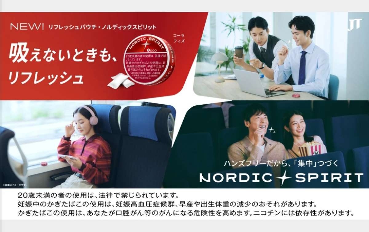 こうした喫煙不便を解消する新たな選択肢として、JTは煙もにおいも出ないオーラルたばこ『ノルディックスピリット』を日本市場へ投入。
