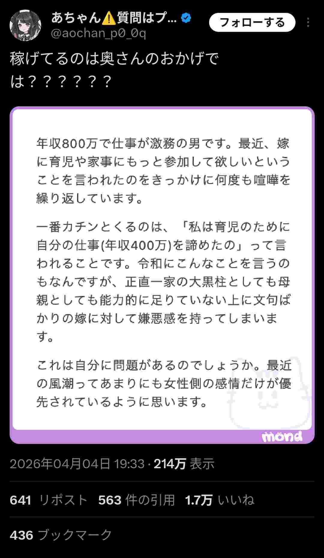 でも無職から専業主婦になるならこういうこと言うのもまあ分からんでもないけど400万とはいえ仕事してた人間がこれいうのが分からんな