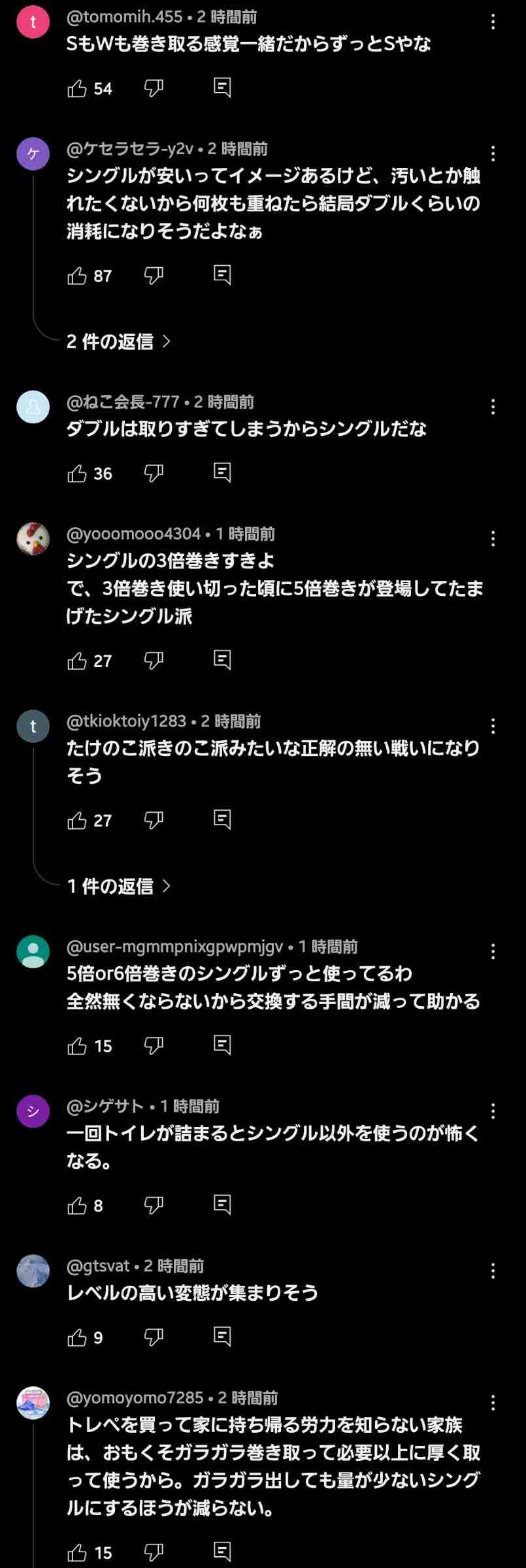 ダブル2倍巻きしか買わん。一人暮らしだけどとりあえず10袋積んでる