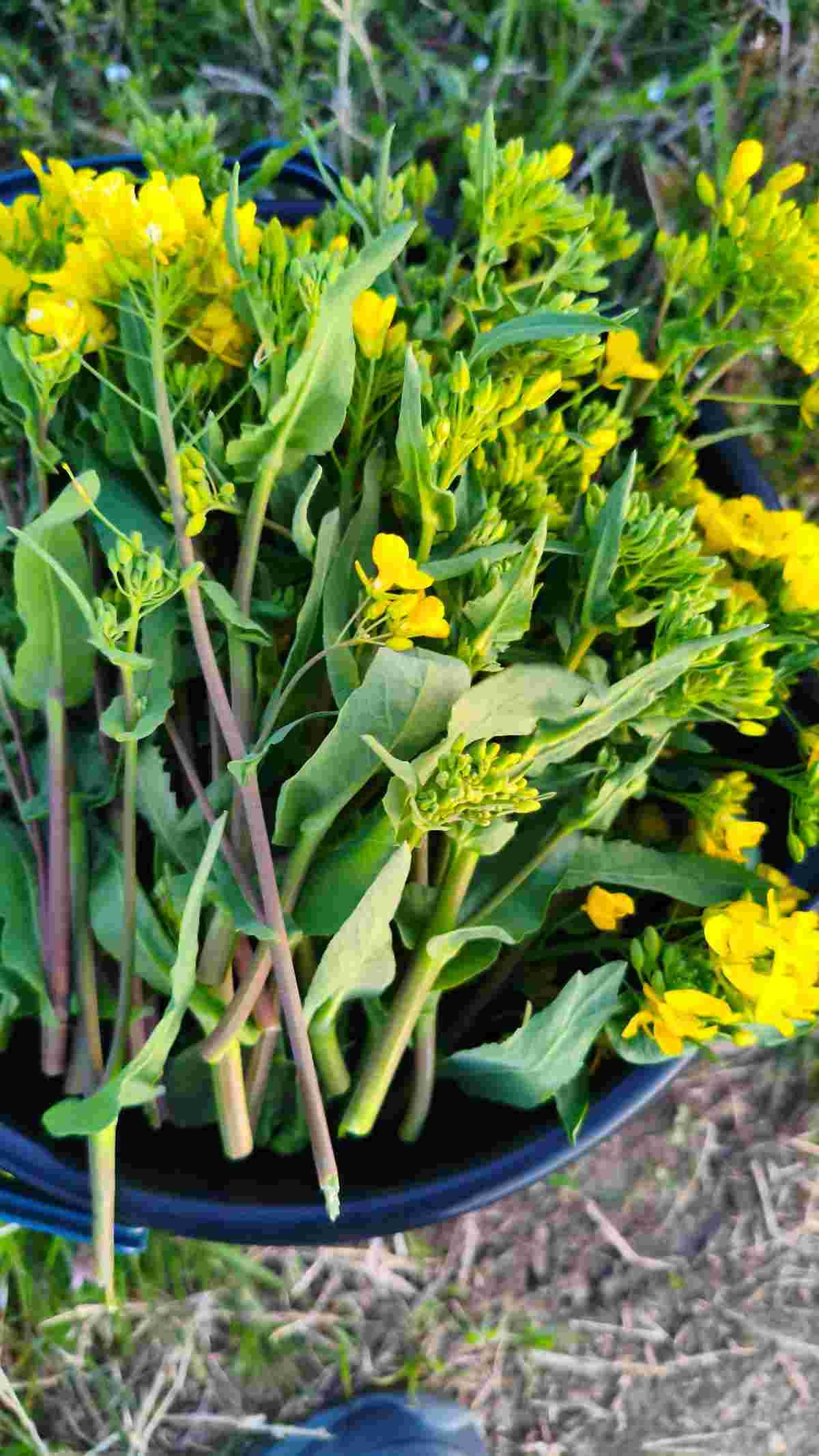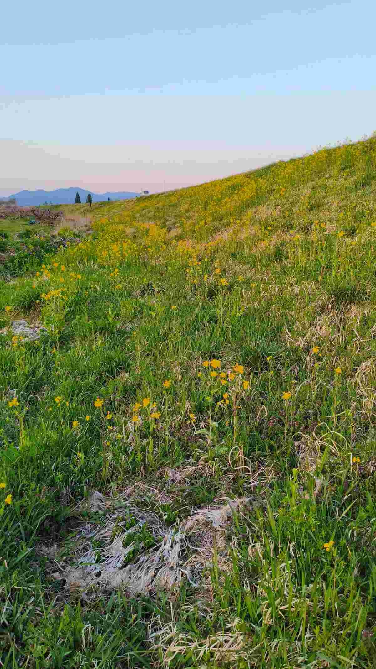 堤防道路の土手で菜の花を摘んだ🌼