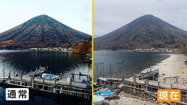 人気観光地の湖がカラカラに 中禅寺湖の水位激減 華厳の滝もチョロチョロに…河口湖周辺では節水協力要請も|FNNプライムオンライン