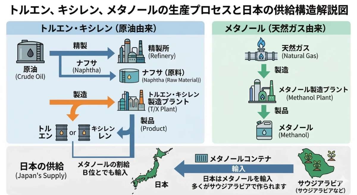 シンナーの原料、トルエンを作ります