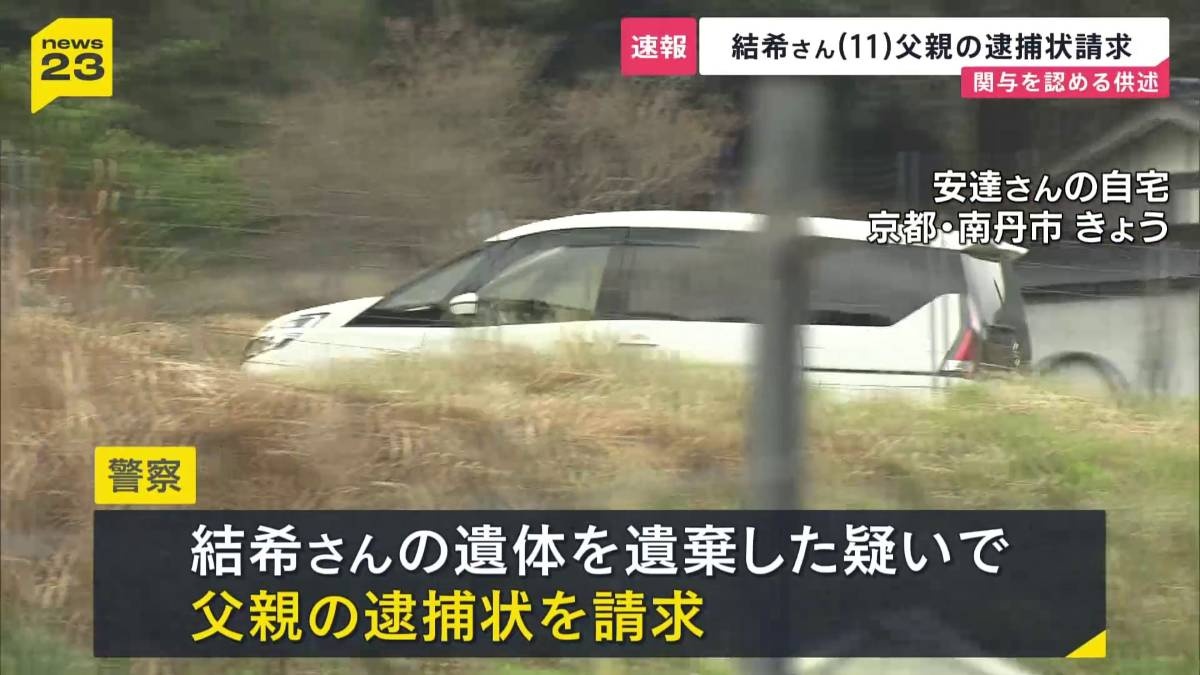 【速報】安逹結希さん父親の逮捕状を請求 死体遺棄の関与を認める供述 京都・南丹市11歳男児死体遺棄