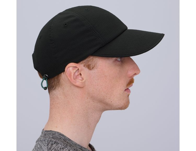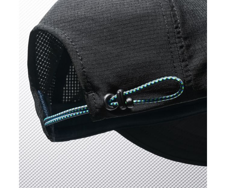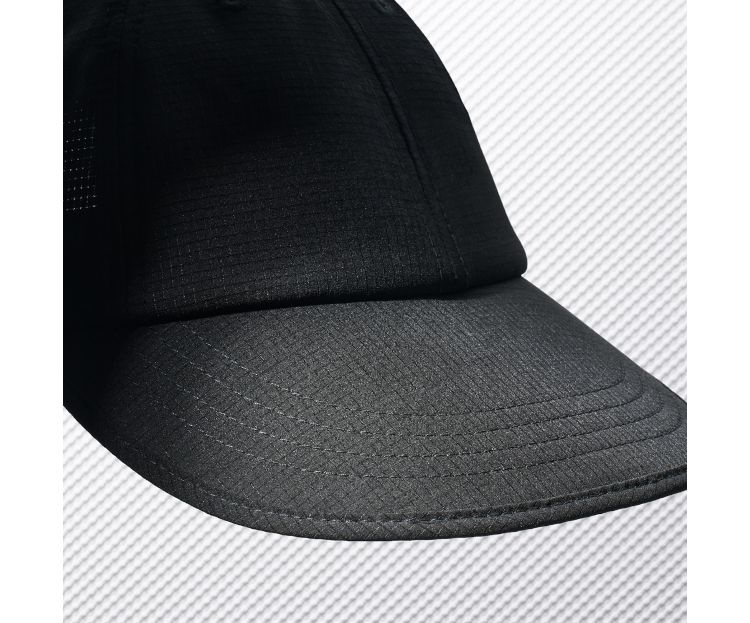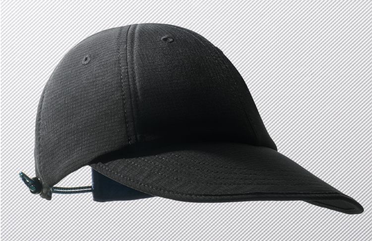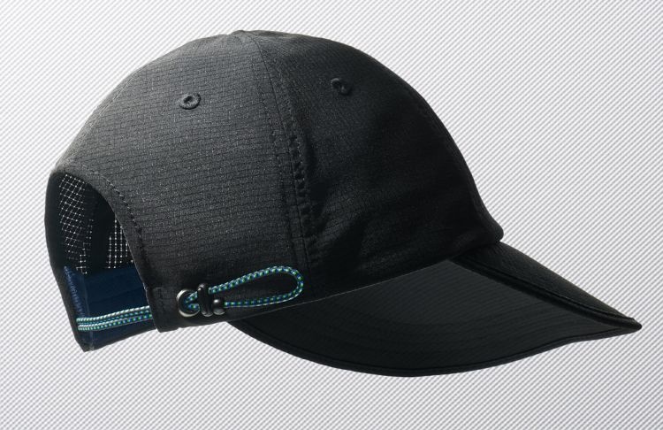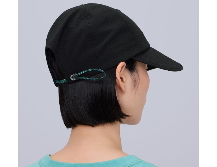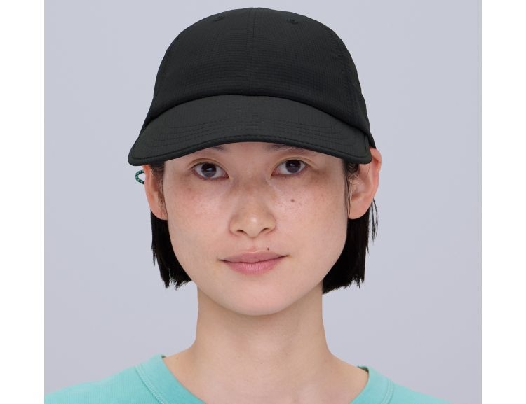 軽量なメッシュ素材を使用し、フィット感に優れた蒸れにくいキャップ。大きめのツバはUV遮蔽率90%以上で、芯が柔らかく丸めて収納できる。