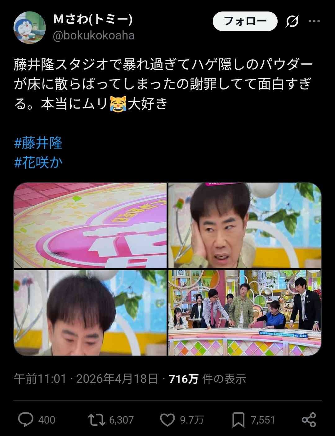 おいしい記憶みたいな番組のオープニングでハゲててヘアメイクが大変みたいな話はしてた