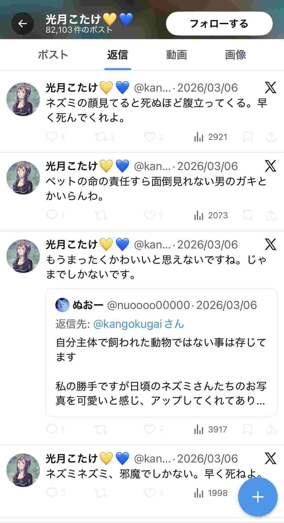 ネズミの顔見てると死ぬほど腹立ってくる。早く死んでくれよ。