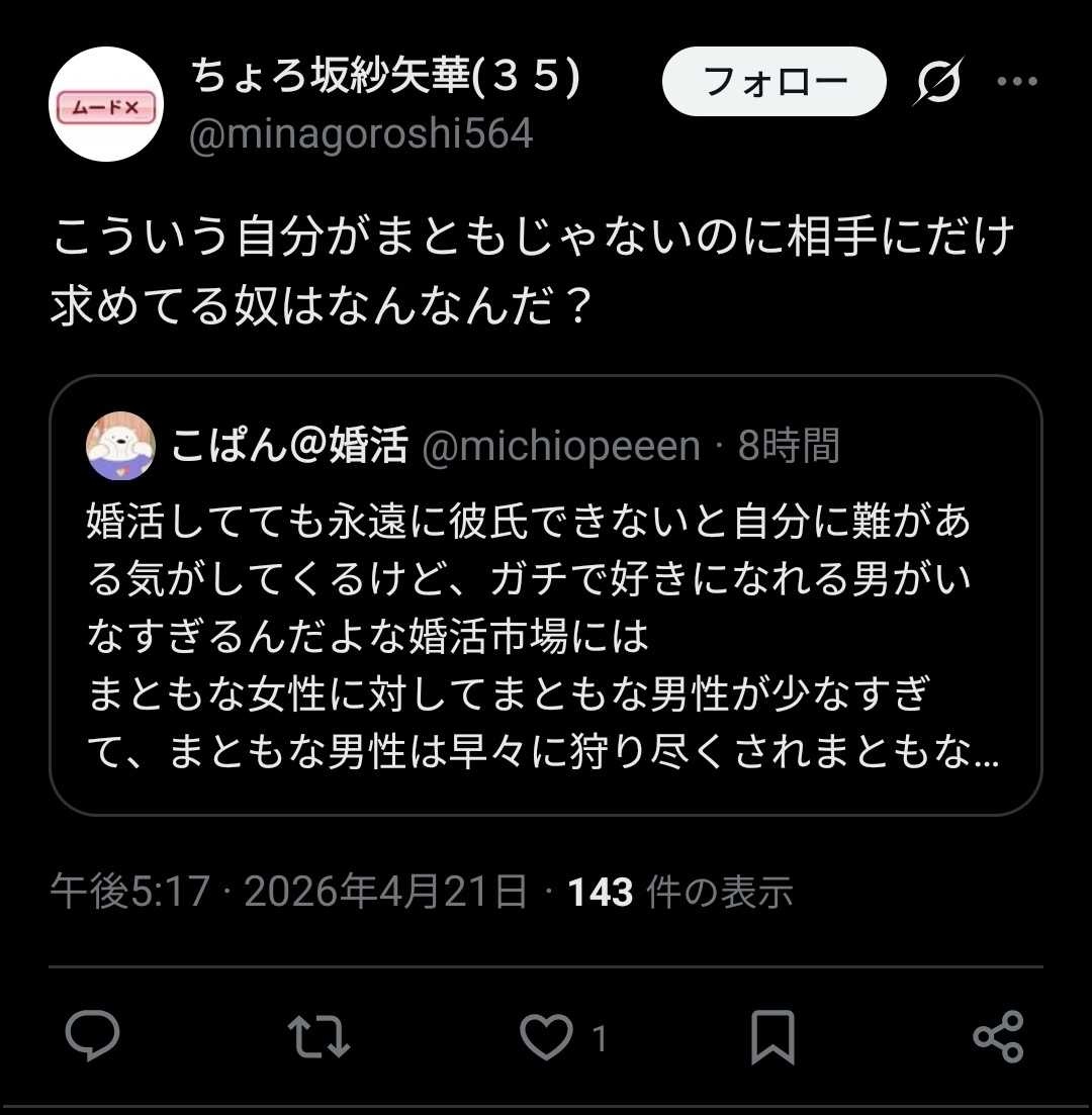 1 名前:ひみつの名無しさん 投稿日時:2026/04/21(火) 21:11:27.04 ID:Jl1vw+91H