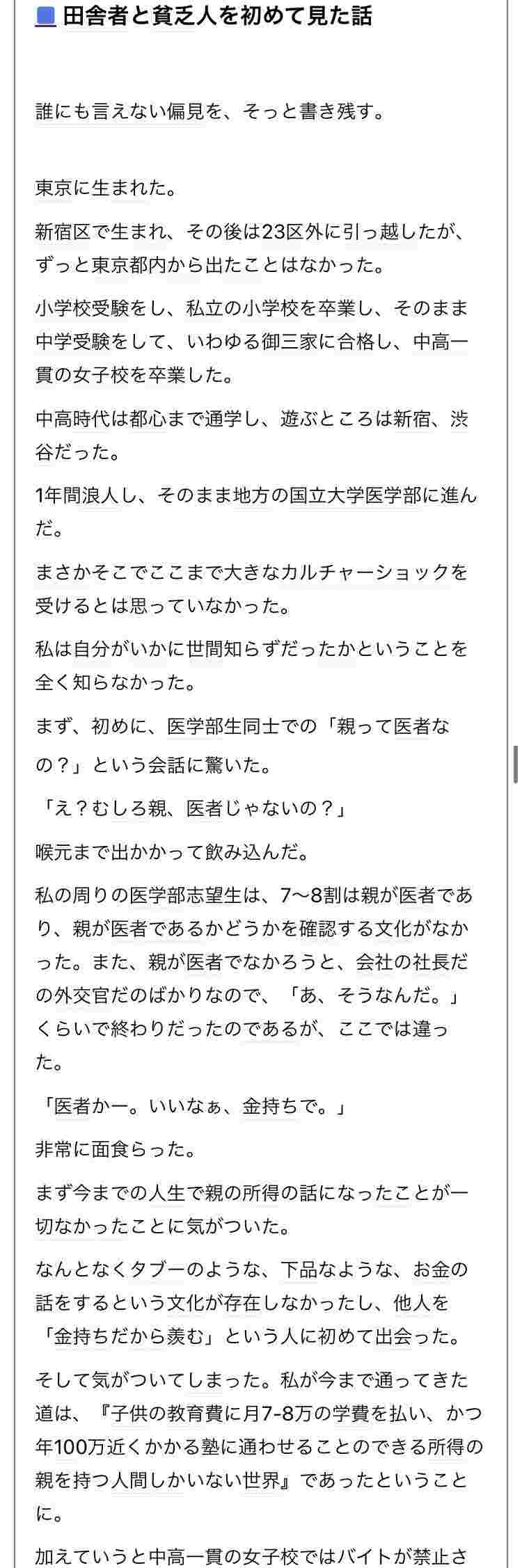 親が医者で中学受験までしたけど一浪して地方の国立医学部しか受かりませんでしたといことが言いたいのか