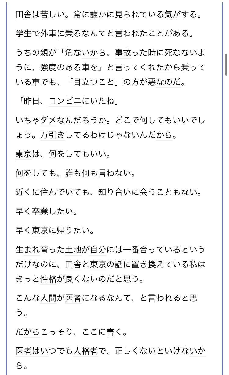 田舎の国立医に受かった金持ちの子供が田舎に住みたくないから都会の方で部屋借りて新幹線通学してた