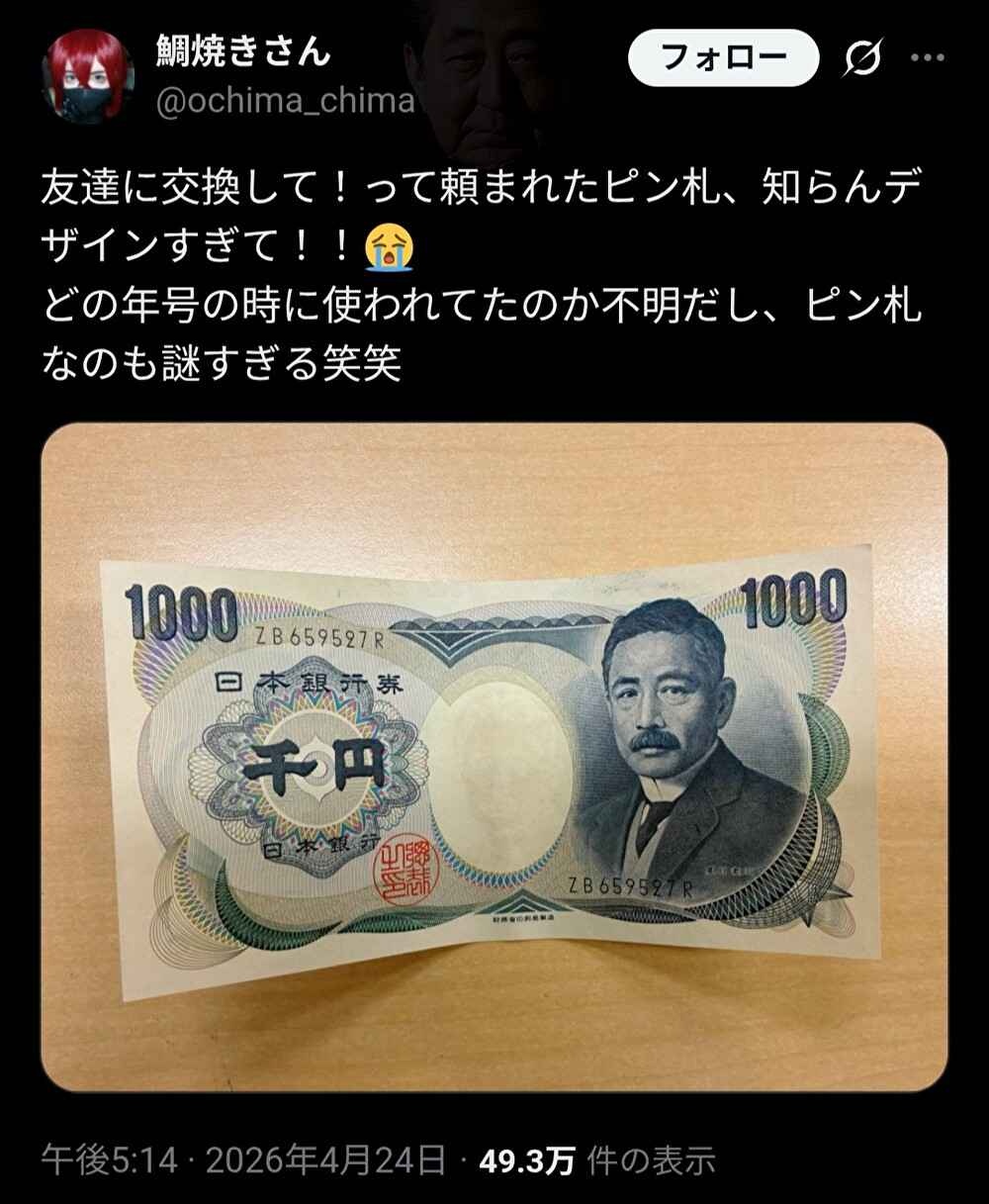 若いネーチャンが店員だったから多分旧札わかんねーだろうなと思って新しいほうの札出して払ったわ