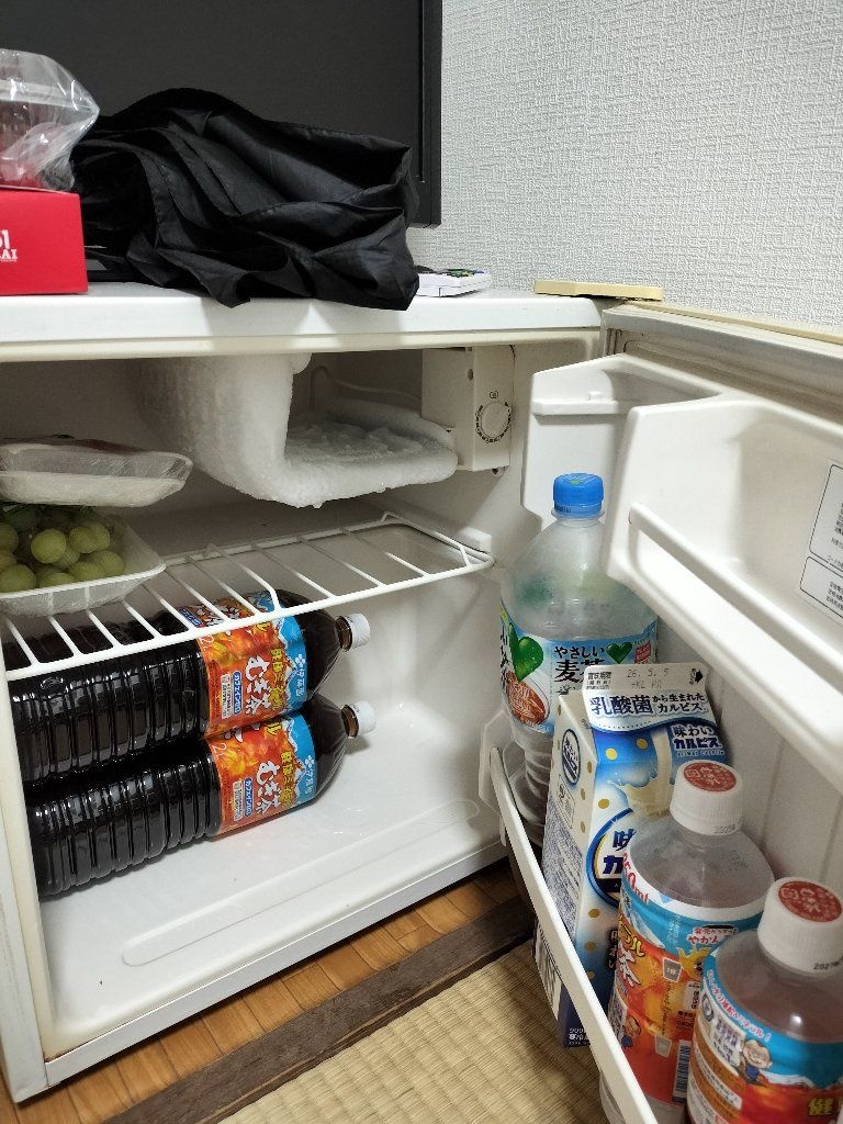 この小型冷蔵庫とそのうえにテレビ置くのって派遣寮とかでよく見るタイプ