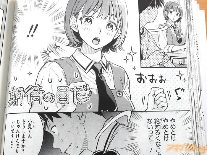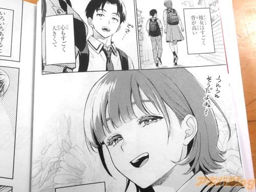 今回発売になったコミックス「僕の彼女はデッカワイイ」2巻【AA】には第5話~第10話を収録し、オビ謳い文句は『すぐそこにあるのにとどかない、そんな距離感が気持ちいい』で、裏表紙は『いま最高に推せる身長差カップルのお話』だった。