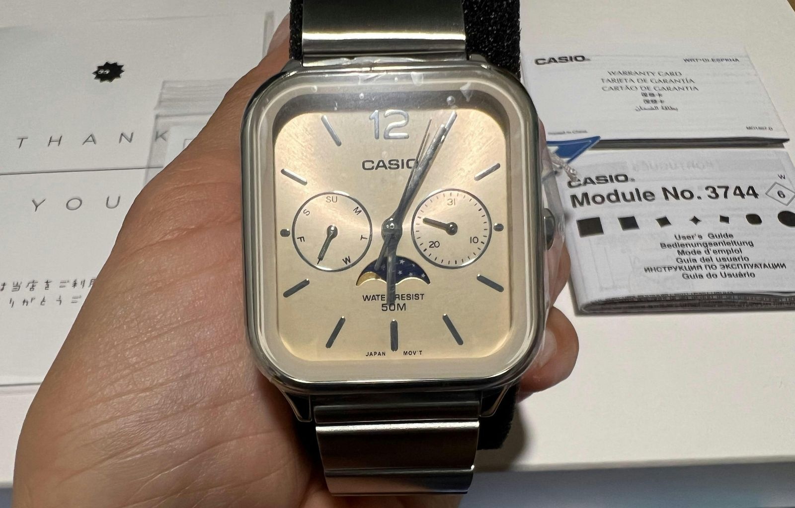 【画像】めちゃカッコいい「チプカシ」見つけた。高級感のある盤面にムーンフェイズ機構まで搭載して17600円