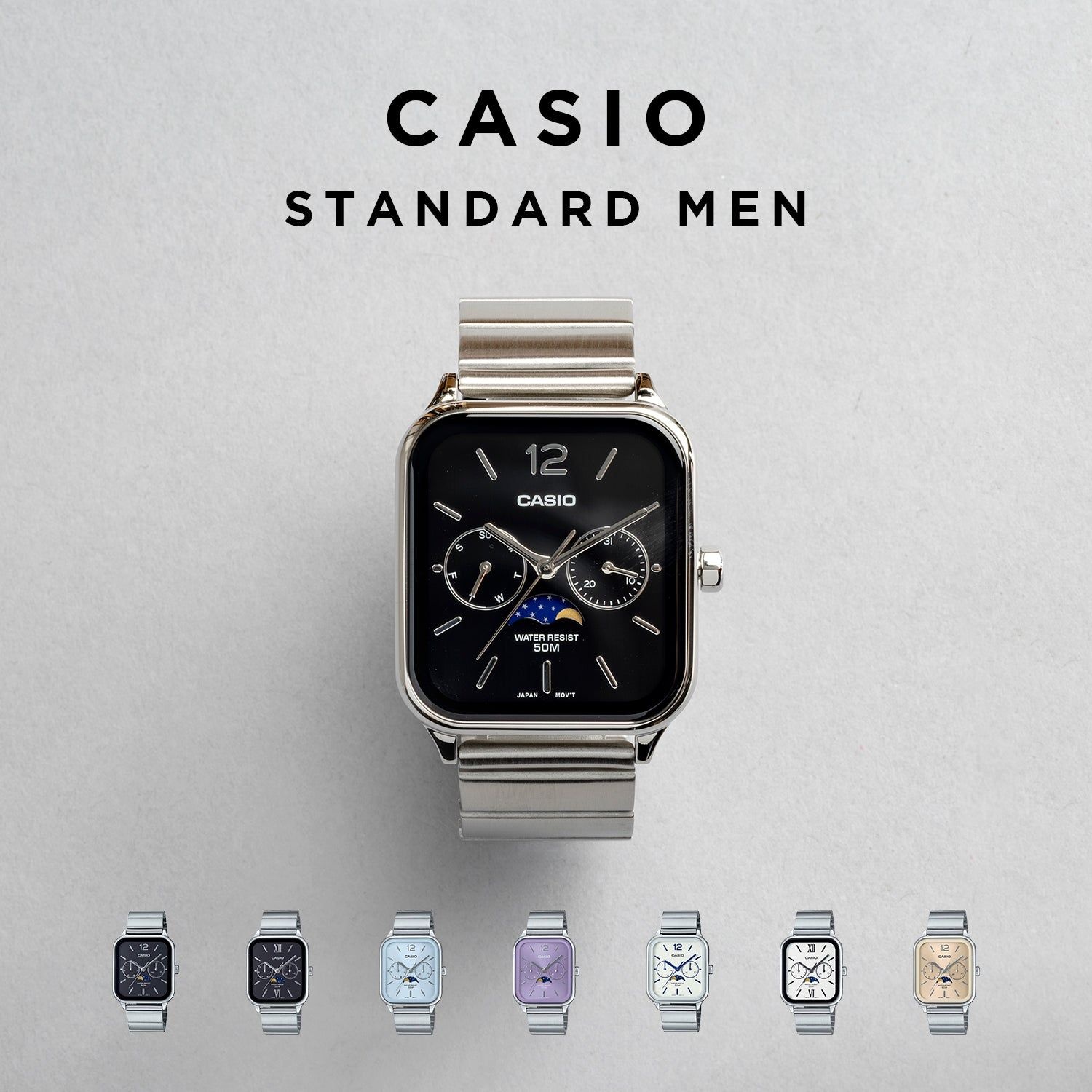 カシオMTP-M305シリーズは、日常に特別なエレガンスを加えたい方に最適な腕時計です。特筆すべきは、6時位置のムーンフェイズ機構で、月の満ち欠けをロマンティックに表示します。