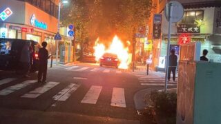嫌儲横浜の路上でベンツが大炎上🔥 車椅子マーク♿付き