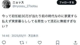 なんG同棲してるカップルって男が「家賃光熱費」全負担するって普通なん?