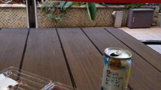 VIPいつも公園で飲んでるオッサン、商業施設のイスとテーブルで飲むよ🍡🍺😅