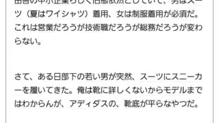 嫌儲上司さん、スーツにスニーカーを履いてきた部下を呼び出すwww