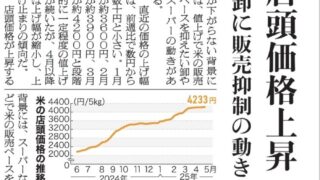 嫌儲米の卸売業者、スーパーに更なる値上げを要請。卸売業者「値上げで米の販売ペースを抑えたい」