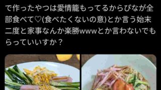 嫌儲女「夫が30分かけて作った冷やし中華がこれで私が10分で作ったのがこれw二度と家事楽勝って言うな」あれ?