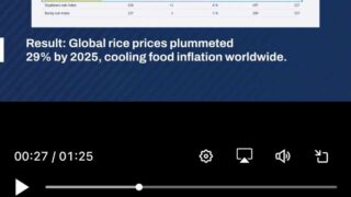 嫌儲WTO世界のコメ🌾価格は記録的な豊作により1年で35%下落(5キロで200円程度)と発表※日本は1年で3倍値上がり