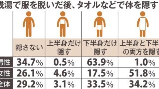 嫌儲産経が独自調査で珍記事「銭湯でタオルで隠さない30%・隠す70%、男女別でも男性隠さない35%・隠す65%」んなわけないだろ